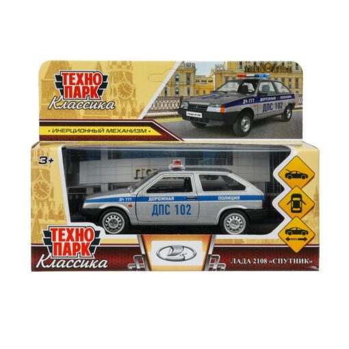 Инерционная металлическая модель «Lada-2108 «Спутник». Полиция» ТМ «Технопарк» — прекрасный подарок для маленького автолюбителя:
