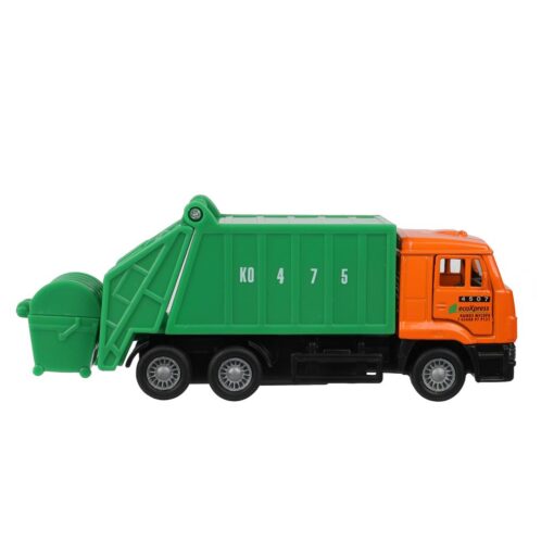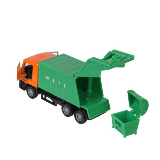 — инерционный механизм (поставьте мусоровоз на ровную поверхность, потяните за корпус назад, отпустите и он начнёт быстро двигаться вперёд)