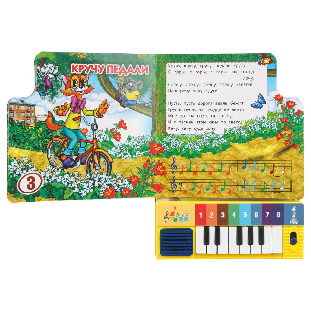 На каждом развороте малыша ждут крупные красивые иллюстрации и тексты песен с нотами к ним. По нотным схемам можно наиграть мелодию той или иной песни из книги, пользуясь цветовой подсказкой. Благодаря наличию нескольких режимов работы, можно и слушать песни, и играть по клавишам как на настоящем пианино. Книжка сделана из плотного картона, поэтому мамы могут не опасаться, что ребёнок порвёт странички.