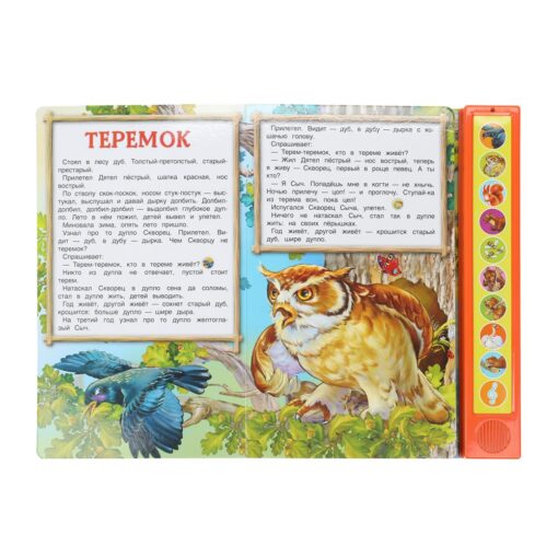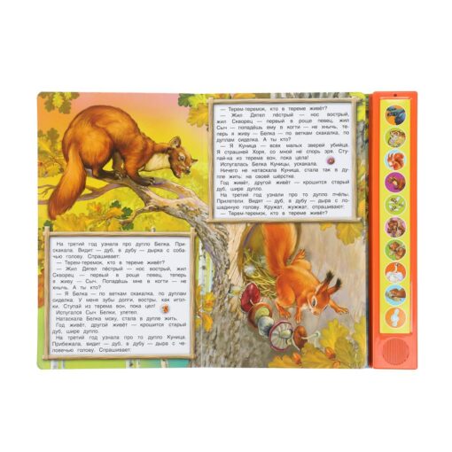 Ребёнок с удовольствием будет рассматривать красивые картинки и читать вместе с родителями замечательные сказки Виталия Бианки о лесных животных и природе, а также нажимать на яркие кнопочки и слушать фразы животных и весёлую песенку. Книжка сделана из плотного картона, поэтому можно не опасаться, что малыш порвёт её странички.