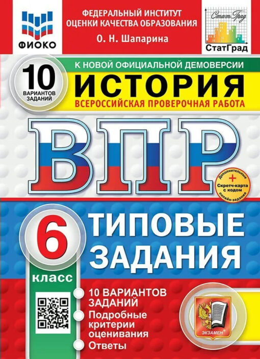 ВПР. ФИОКО. СТАТГРАД. ИСТОРИЯ. 6 КЛАСС. 10 ВАРИАНТОВ. ТЗ. ФГОС НОВЫЙ+SC