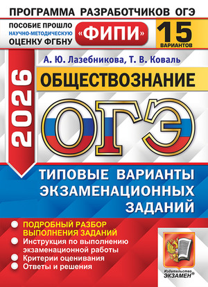 ОГЭ ФИПИ 2026. 15 ТВЭЗ. ОБЩЕСТВОЗНАНИЕ. 15 ВАРИАНТОВ. ТИПОВЫЕ ВАРИАНТЫ ЭКЗАМЕНАЦИОННЫХ ЗАДАНИЙ