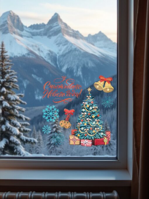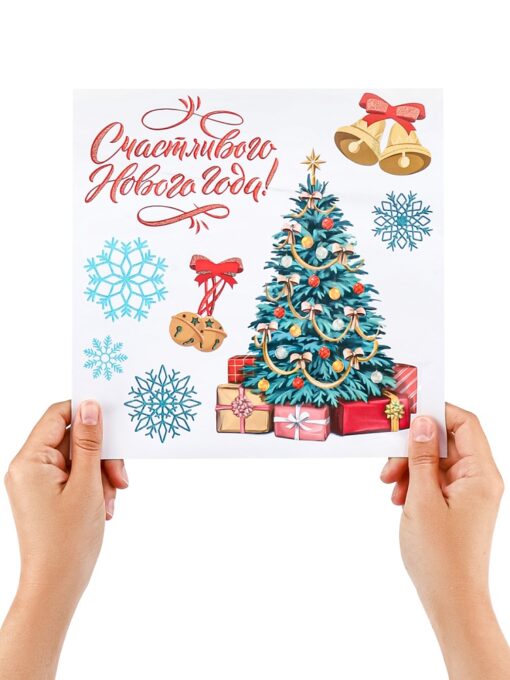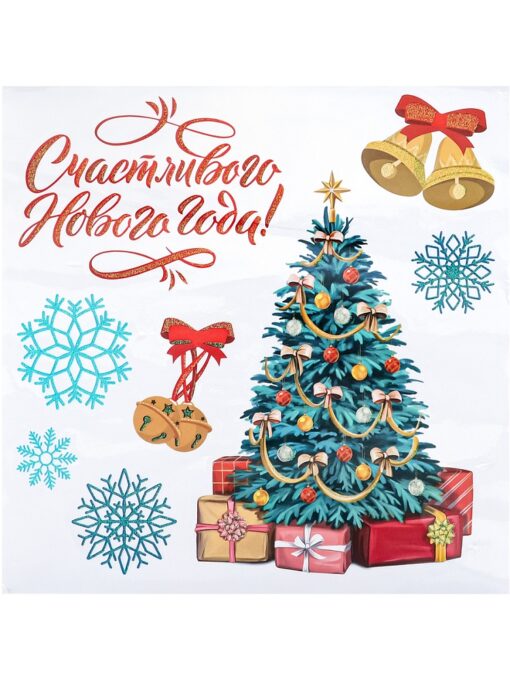 Новогоднее оконное украшение «Новогодняя ёлка», 25х25 см (собств. разработка) НН-2095