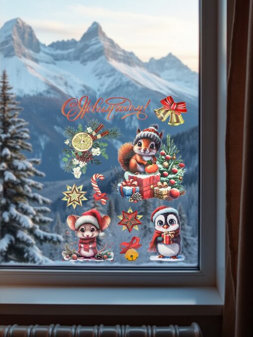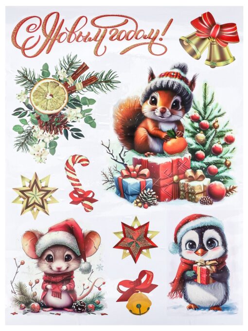 Новогоднее оконное украшение с раскраской. «Милые животные», 30х40 см (собств. разработка) НН-2099