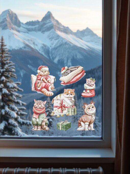 Новогоднее оконное украшение «Новогодние котики», 25х25 см (собств. разработка) НН-2092