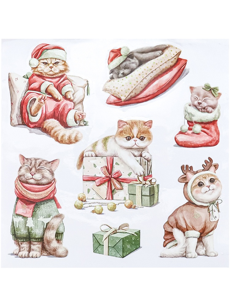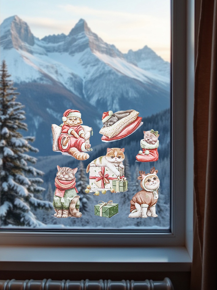 Новогодние наклейки на окна «Новогодние котики», 25х25 см (собств. разработка) НН-2092