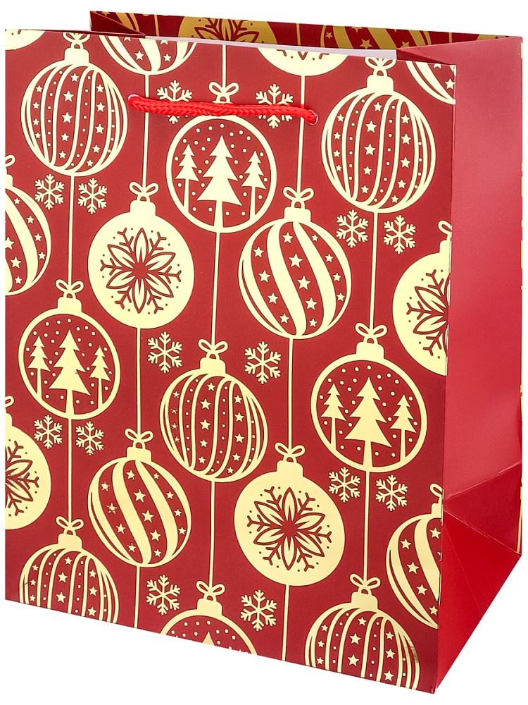 Пакет подарочный с мат.лам. и тис.фол..18х23х10 см (M) Золотистые шары, 190г ППК-2294