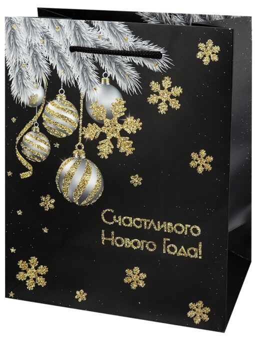 Пакет подарочный с мат.лам. и глит. 18х23х10 см (M) Новогодние ветки, 190г(соб.р.)ППК-2304