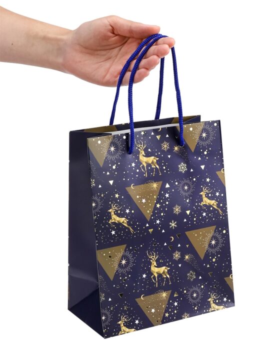 Пакет подарочный с мат.лам. и тис.фол.18х23х10 см (M) Золотистые олени,190г(собс.р.)ППК-2291