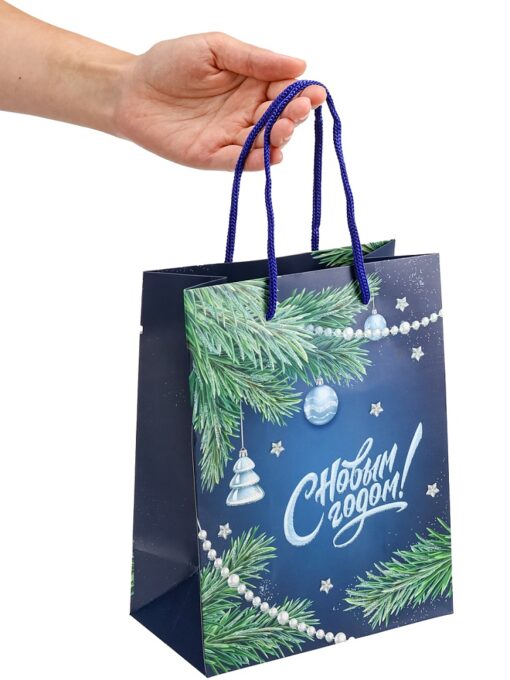 Пакет подарочный с мат.лам. и глит. 18х23х10 см (M) Новогодние бусы, 190г(соб.р.) ППК-2310