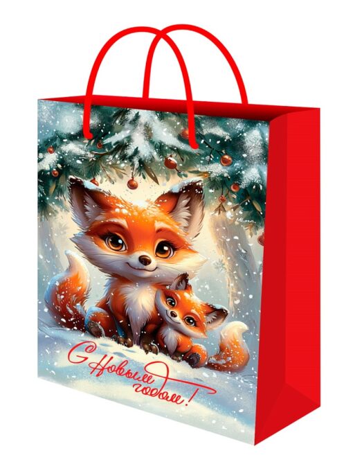Пакет подарочный с глянц. ламин. 22x31x10см (ML) Новогодние лисята, 128г (собс.разр.) ППК-2328