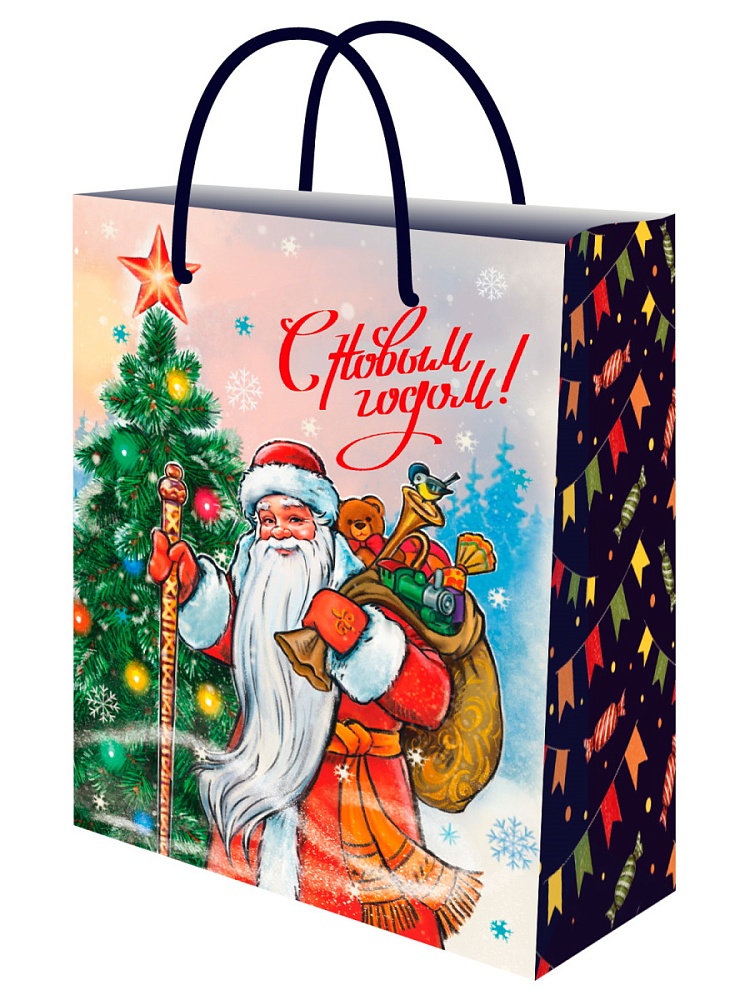 Пакет подарочный с глянц.лам. 18х23х8 см (M) Дед Мороз, 128г ППК-2314