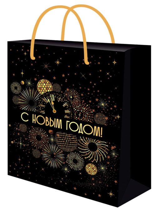Пакет подарочный с глянц.ламин. 26,4х32,7х8 см (L) Чёрный новогодний, 128г (с.р.) ППК-2357