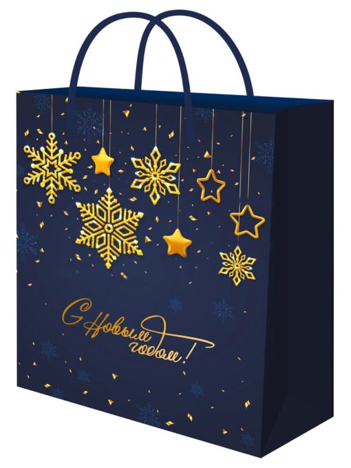 Пакет подарочный с глянц.ламин. 26,4х32,7х8 см (L) Снежинки, 128г (собс.разр.) ППК-2353