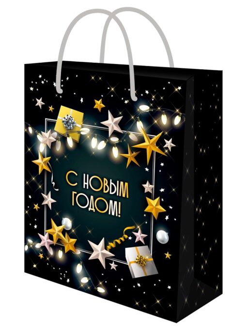 Пакет подарочный с мат.лам. и тис.фол. 18х23х10 см (M) Звёзды, 190г(собс.раз.) ППК-2302