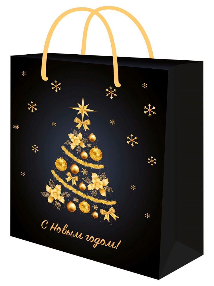 Пакет подарочный с мат.лам. и тис.фол. 26,4х32,7х13,6 см (L) Золотистая ёлка, ППК-2347