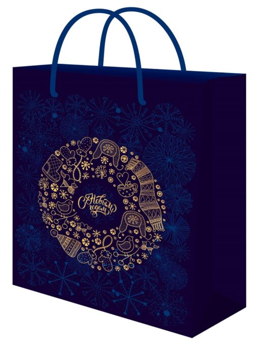 Пакет подарочный с мат.лам. и тис.фол. 26,4х32,7х13,6 см (L) Дух праздника,190г ППК-2349