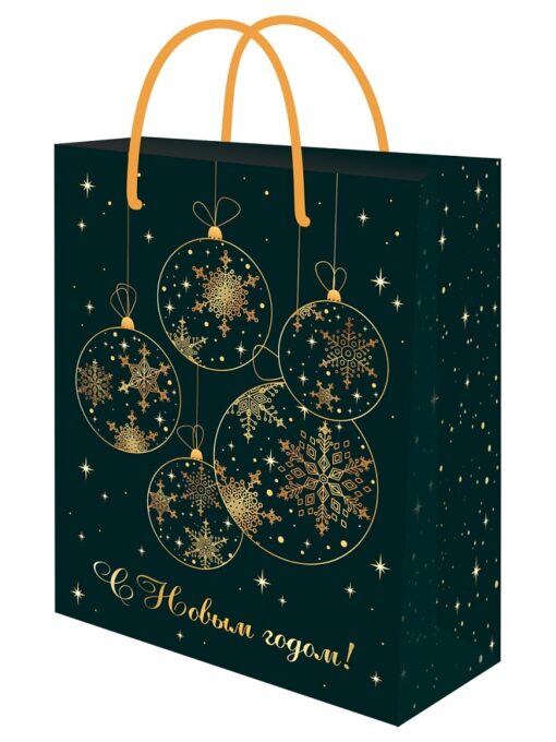 Пакет подарочный с мат.лам. и тис.фол.18х23х10 см (M) Зеленые шарики, 190г(с.р.)ППК-2299