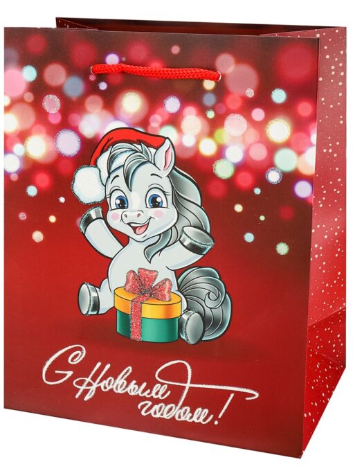 Пакет подарочный с мат.лам. глит. 18х23х10 см (M) Пони с подарком, 190г(собс.раз) ППК-2422