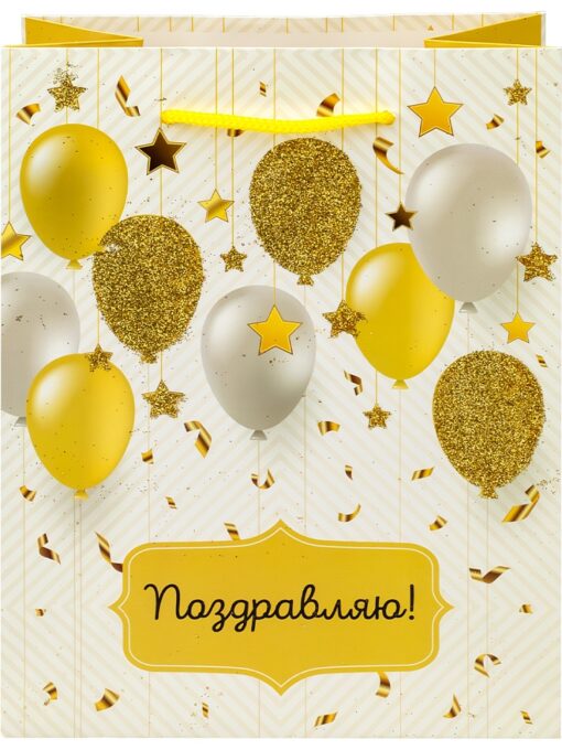 Пакет подарочный с мат.лам. и глит. 18х23х10 см (M) Шарики, 190г(собс.раз.) ППК-2750