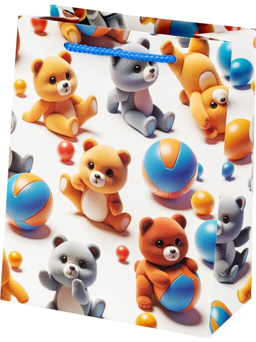 Пакет подарочный с мат. лам. 18х23х10 см (М), Медведи с мячами, 210 г/м2, ППК-7574