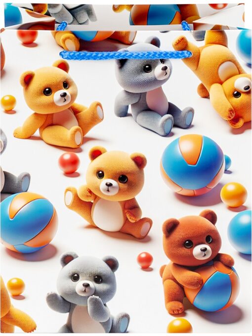 Пакет подарочный с мат. лам. 26х32х12 см (L), Медведи с мячами, 210 г/м2, ППК-7577