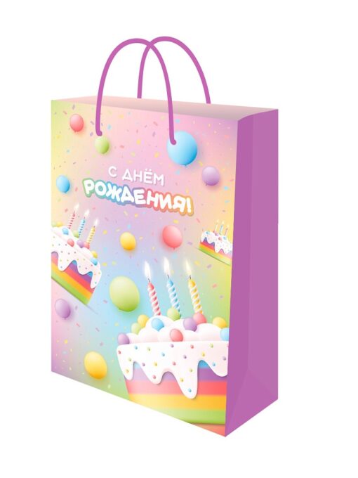 Пакет подарочный с мат.лам. 22х31х10см (ML) Торт со свечками, 190г (собс.разр.) ППК-2763