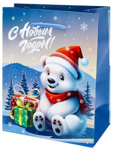 Пакет подарочный с глянц.ламин. 11,5х14,5х6 см (S) Белый медвежонок, 128г ППК-2275