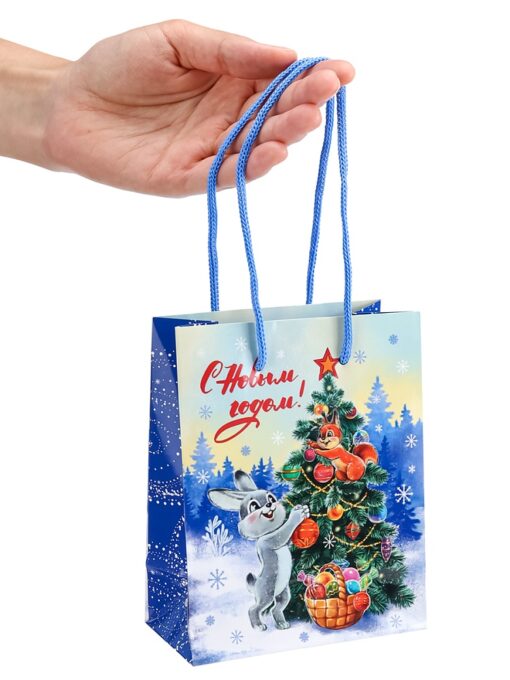 Пакет подарочный с глянц.ламин. 11,5х14,5х6 см (S) Зайка у ёлки, 128г (собст.разр.) ППК-2274