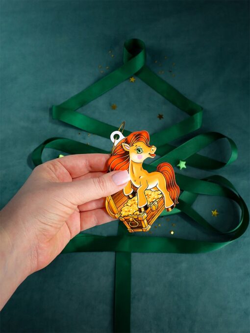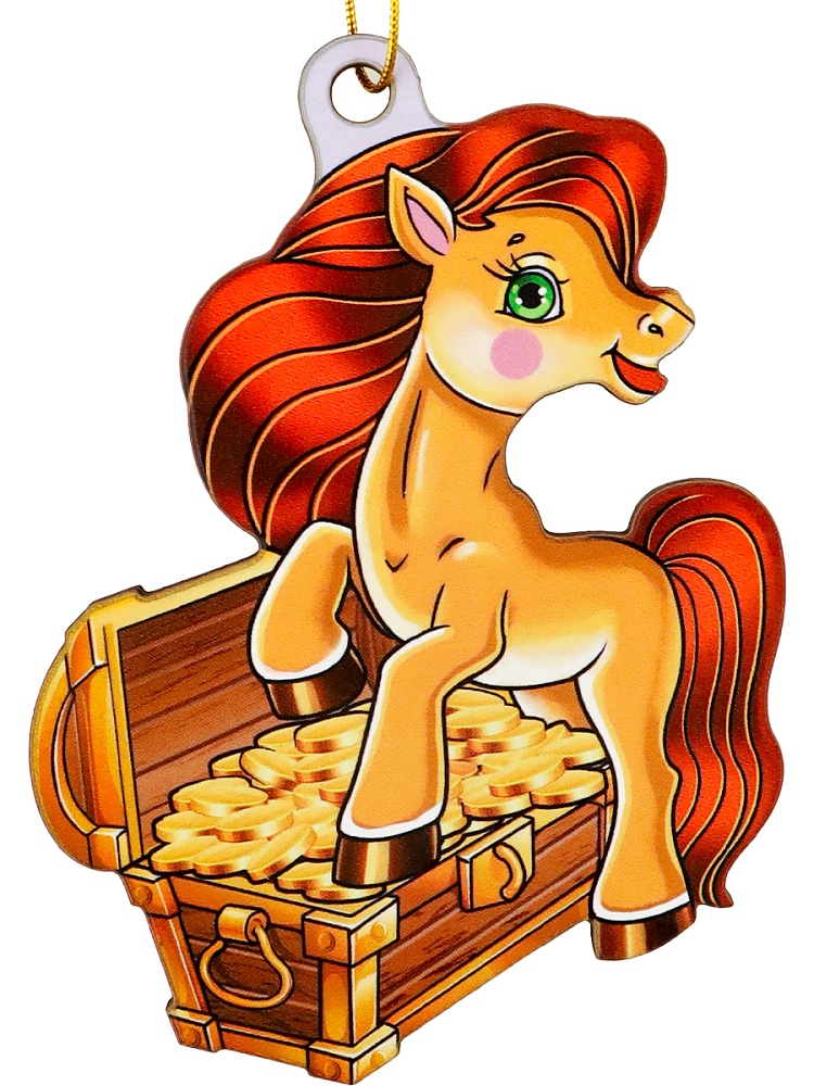 Новогодняя ёлочная подвеска из дерева «Золотая лошадка» 9 см(собс.разр.) НУ-5834