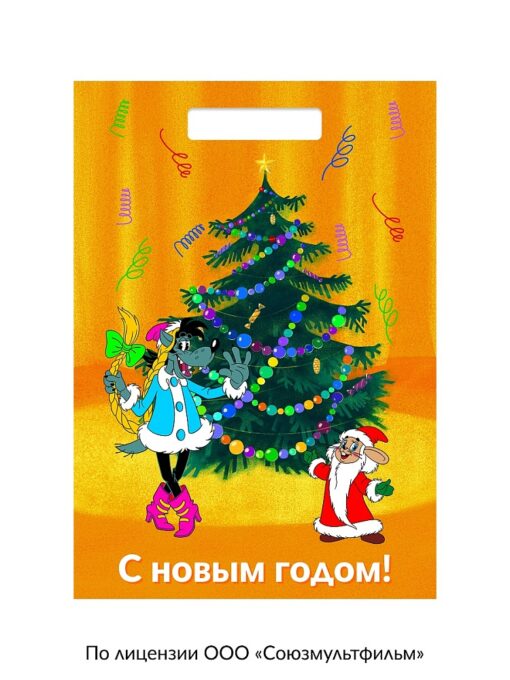 Пакет полиэтиленовый вырубной 20*30/30 мкм «Волк и Заяц у ёлочки» ПИ-7326