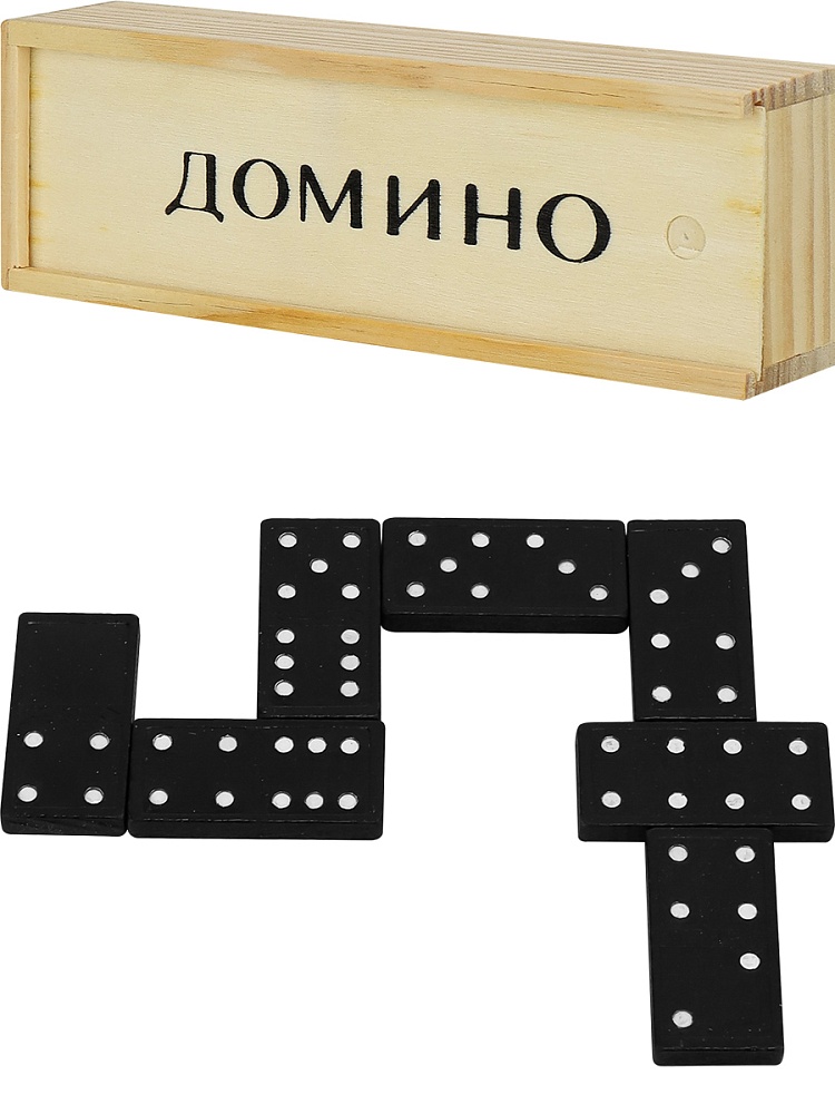 Домино — всемирно известная и любимая настольная игра для взрослых и детей. Игра увлекательна и полезна для мыслительной деятельности. Чтобы выиграть в домино придется проявить свои стратегические способности. Материал: пластик, дерево. Размер: 17х5,5х3 см, размер игральной кости: 4,3х2х0,6 см. В деревянной коробке.