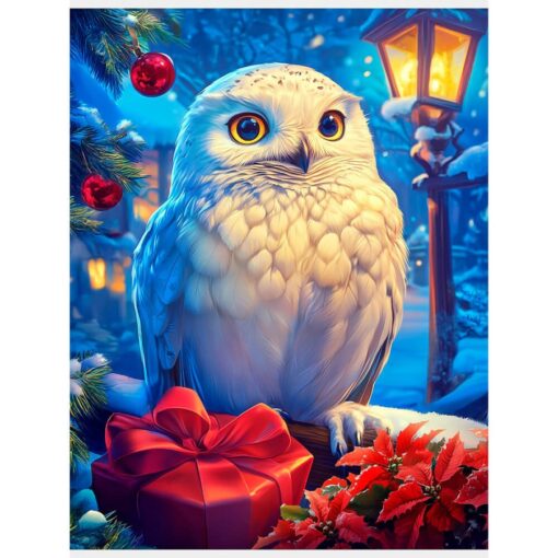 Холст с красками 17х22 см по номерам в коробке (14цв.) Белоснежная сова с подарком арт. ХК-0489