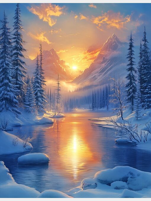 Холст с красками 17х22 см по номерам в коробке (14цв.) Зимний горный пейзаж арт. ХК-0477