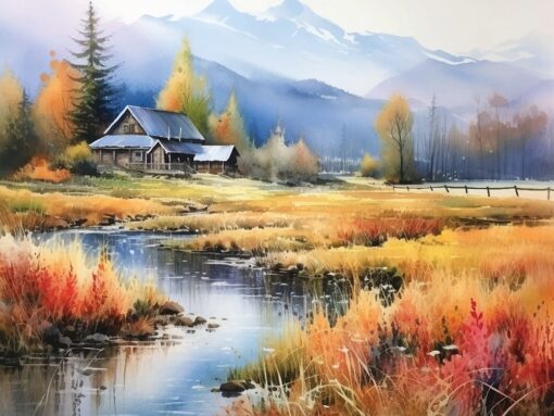 Холст с красками 30х40 см по номер. У подножья гор Джаззл Арт. 112347