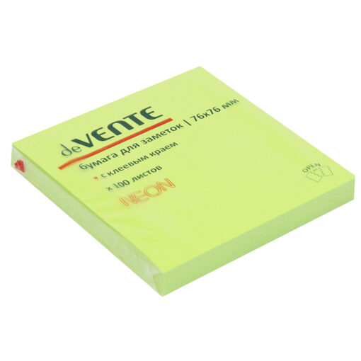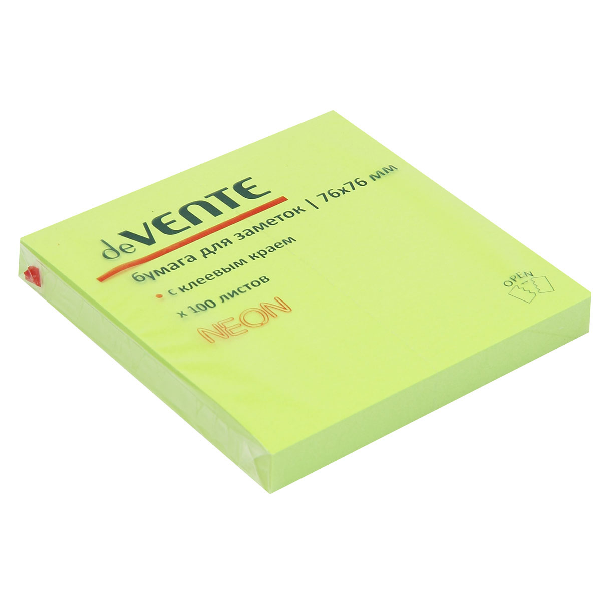 Бумага для заметок с клеевым краем 100л deVENTE 76*76мм Неоновая зеленая 2010330