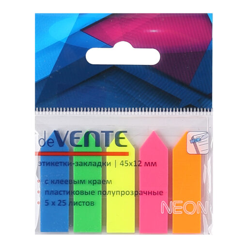 Закладки стикеры 25л 5 неоновых цветов deVENTE пластиковые полупрозрачные в форме стрелки 45*12мм 2011306