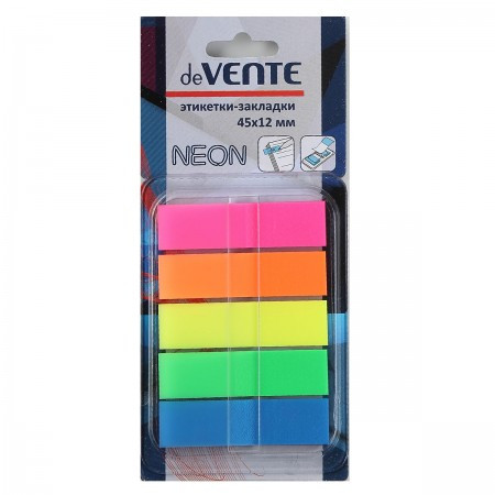 Закладки стикеры 30л 5 неоновых цветов deVENTE пластиковые полупрозрачные Z-сложение 45*12мм 2011315