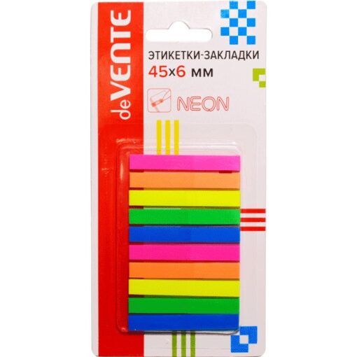Закладки стикеры 20л 10 неоновых цветов deVENTE пластиковые полупрозрачные 45*6мм 2011601