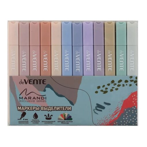 Набор маркеров текстовыделителей 12цв 1-4мм deVENTE Marandi прямоугольный корпус, скошенный наконечник, блистер 5045404
