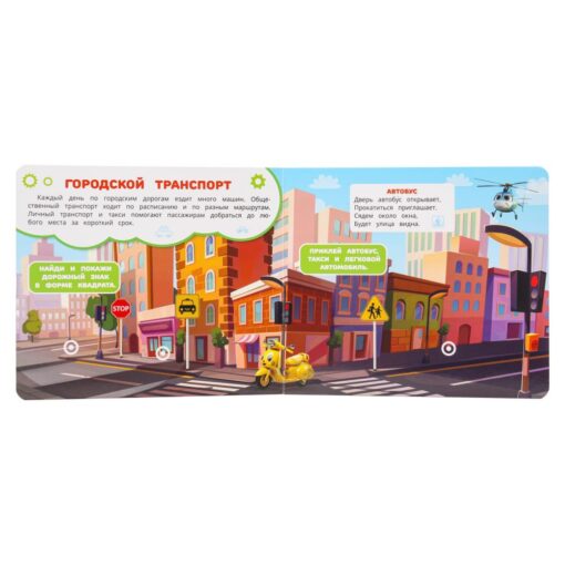 Книга с липучками «Машинки в городе» ТМ «УМка» — отличный подарок для маленьких любознаек: