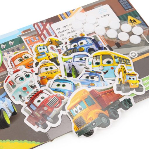 Книга с липучками поможет малышу провести время с пользой, развить фантазию и воспитать усидчивость. Ребёнок познакомится с разными видами транспорта, научится придумывать сюжетные рассказы, выделять один объект из множества других и находить для него место на странице этого удивительного издания. Оригинальный крепёж элементов на липучках делает игру занимательнее и интереснее. Получение информации в такой игровой форме позволит быстрее и эффективнее усвоить новые знания, а также потренировать мелкую моторику.