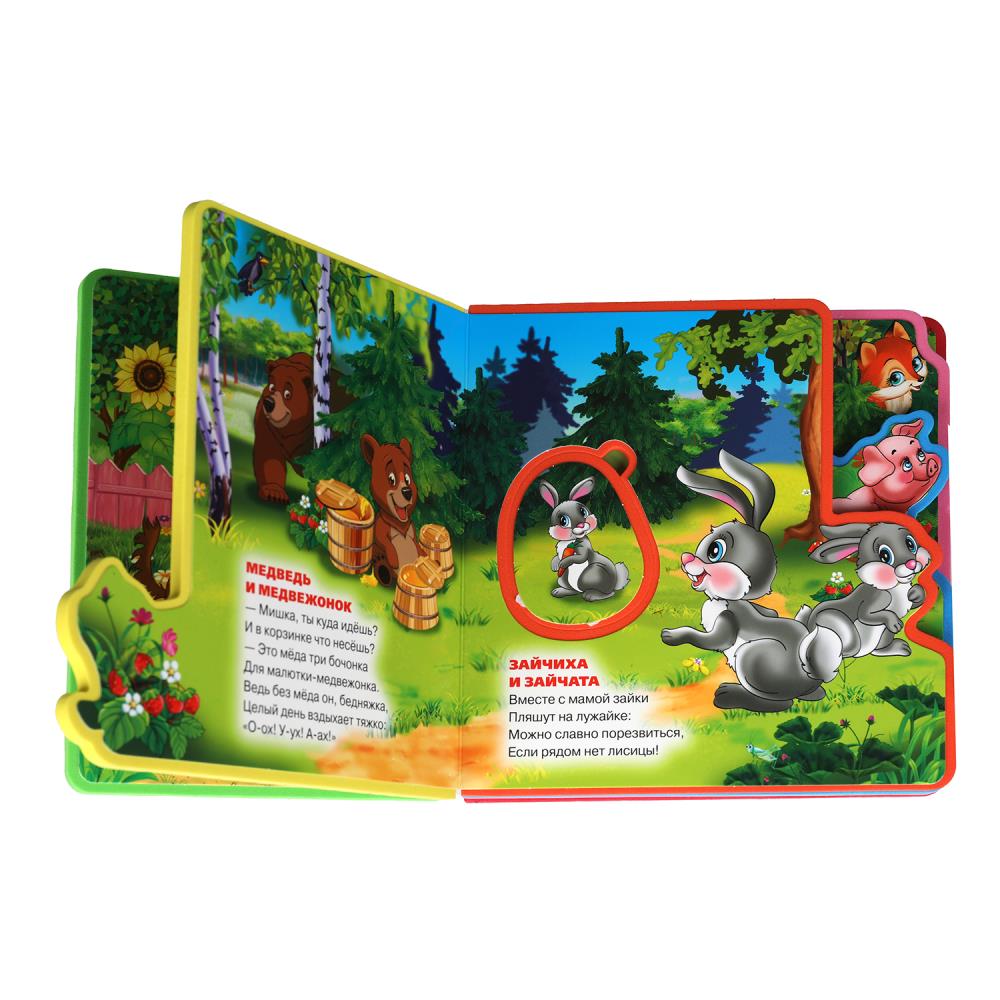 Оригинально оформленная книжка с фигурной вырубкой, яркими страницами и мягким обрамлением обязательно заинтересует маленького любознайку. Ребёнок с удовольствием будет листать книгу с помощью специальных закладок и играть с 5 пазлами-вставками, извлекая их из страниц и помещая обратно. Благодаря компактному формату книжку удобно брать с собой в дорогу.