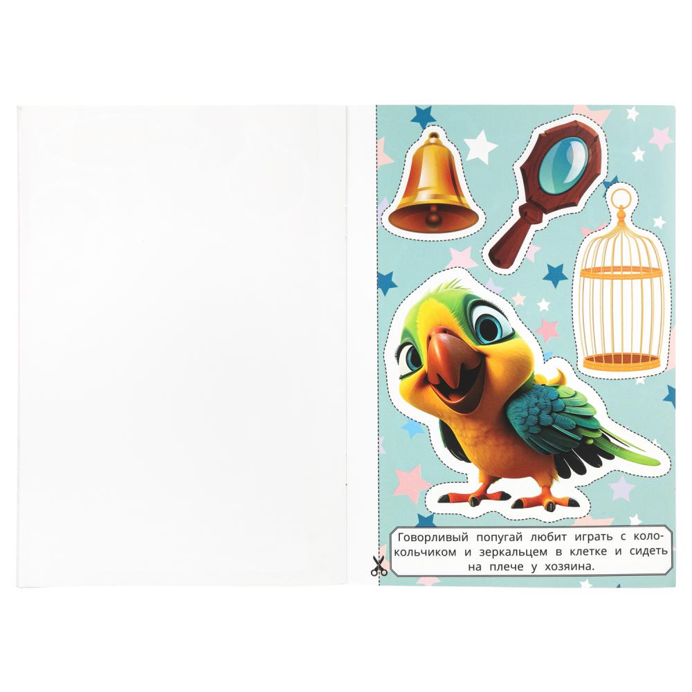 Аппликация — это увлекательная игра и полезное занятие. Ребёнок с удовольствием будет заниматься с этой яркой и интересной книжкой-активити, на страницах которой его ждут очаровательные и забавные зверята. С помощью родителей он научится пользоваться ножницами и вырезать по контурам картинки разной формы. Вырезанные элементы можно приклеить на лист бумаги, и получится красивая аппликация.