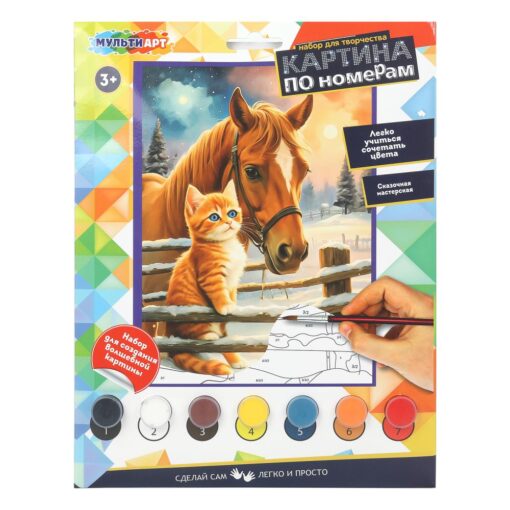 Набор для росписи по контурному рисунку с номерами «Котик и лошадь» ТМ «Мульти Арт» — отличный подарок для ребёнка, который будет способствовать развитию его творческих способностей.