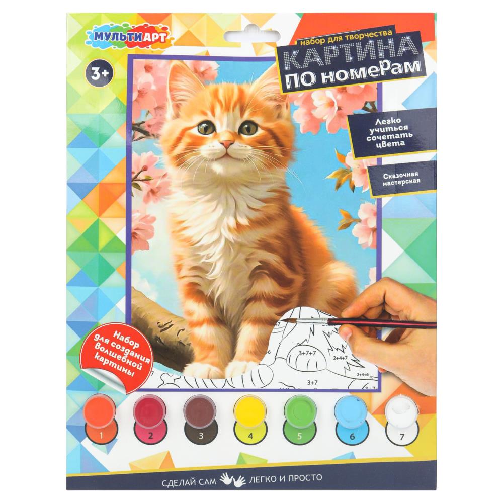 Набор д/творч Картина по номерам 17*23см Котик на дереве Мульти арт 2056