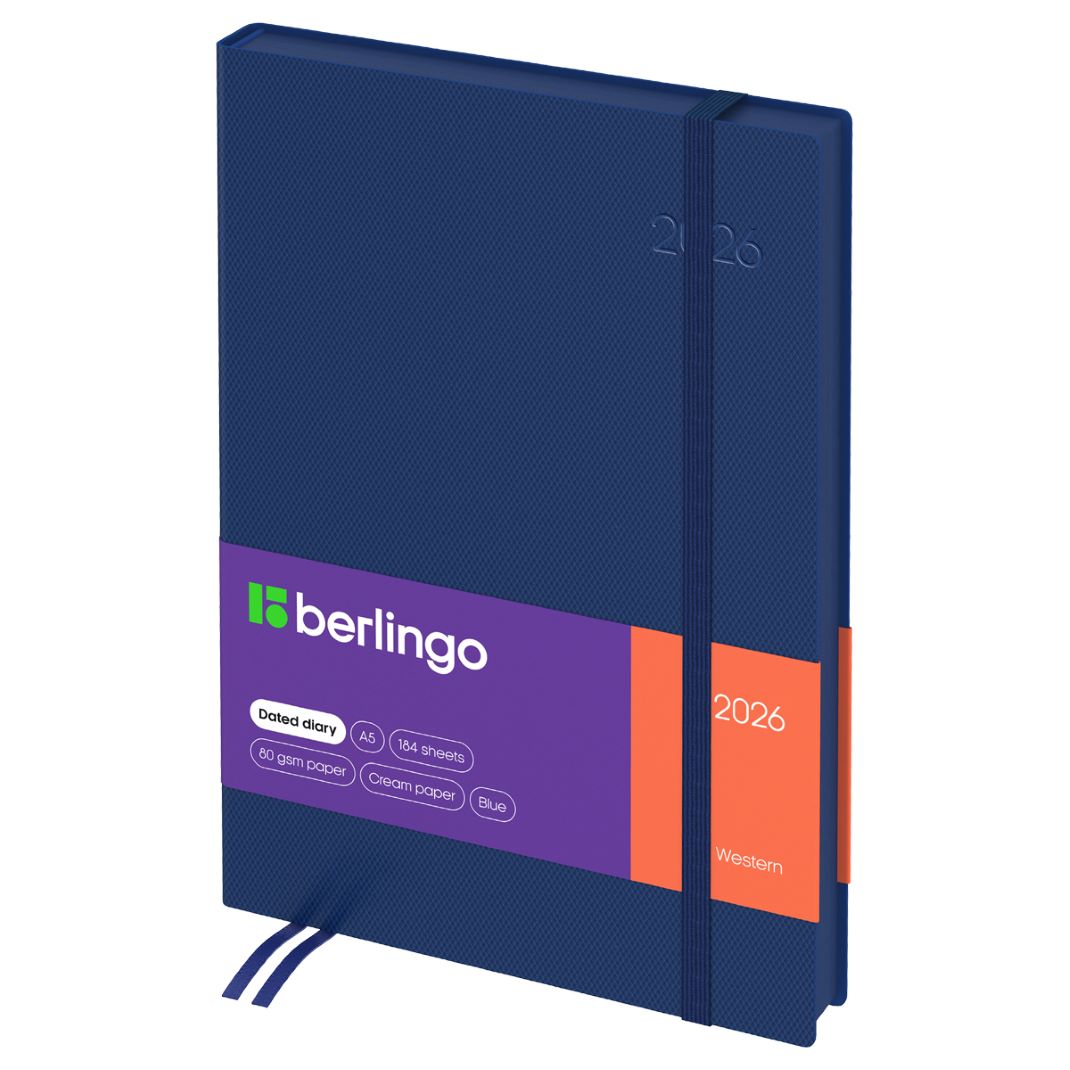 Ежедневник датированный 2026г А5 184л кожзам Berlingo «Western» синий с резинкой 85502