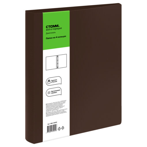 Папка на 4 кольцах СТАММ «Диагональ» А4 40мм 700мкм пластик шоколад 32059