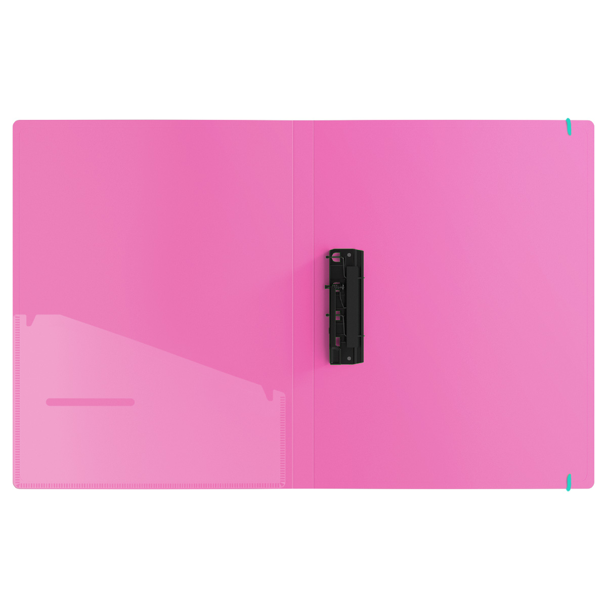 Папка с зажимом Berlingo серии Raze формата А4 – стильный аксессуар для работы и учебы, предназначенный для хранения документов. Вмещает до 300 листов. Ширина корешка составляет 17 мм. Папка размером 310*236*17 мм изготовлена из высококачественного полипропилена толщиной 600 мкм с приятной soft-touch-фактурой. Яркий желтый цвет обложки и контрастный розовый цвет внутренней поверхности. Контрастная цветная резинка-фиксатор для удобного и надежного хранения папки в сложенном виде. Папка оснащена плотным прозрачным карманом для удобного хранения мелочей: ручки, заметок, визиток, дисков, флешек и другого. Изделие имеет надежный и стильный черный зажим.