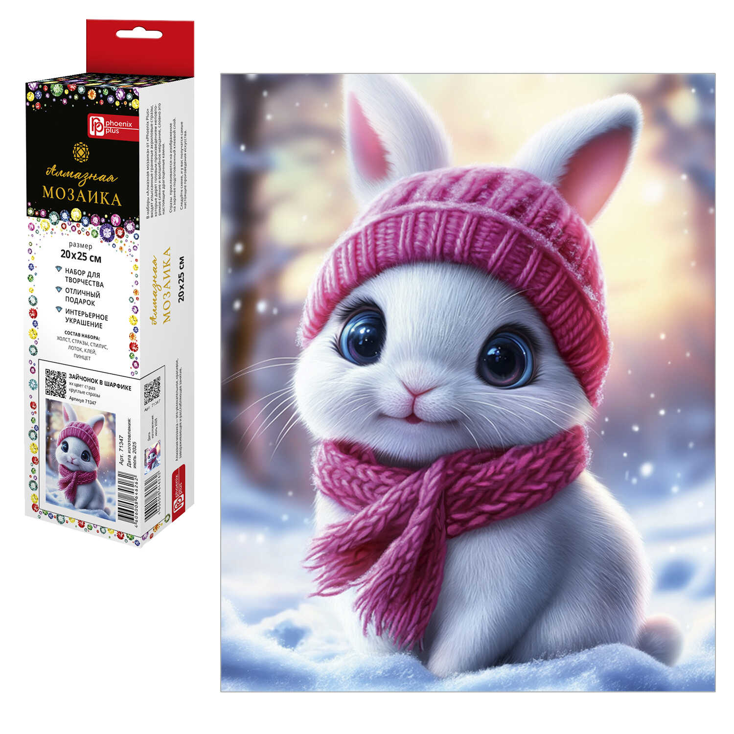 Алмазная мозаика 20*25см 28цв Зайчонок в шарфике картонная коробка арт. 71347